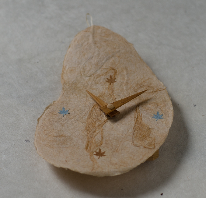 時遊時歓スギ・ヒノキの甘皮(内樹皮)を原料とする和紙を文字盤にして、針には天然木を使った100%Made in Yoshinoの時計。
